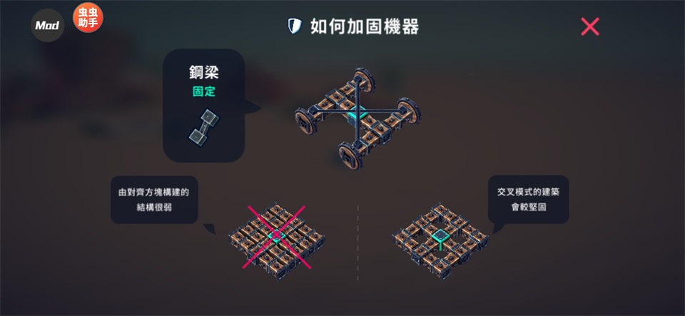 - 使用复杂的建造系统,从 70 多种方块和武器中建造你的机器。