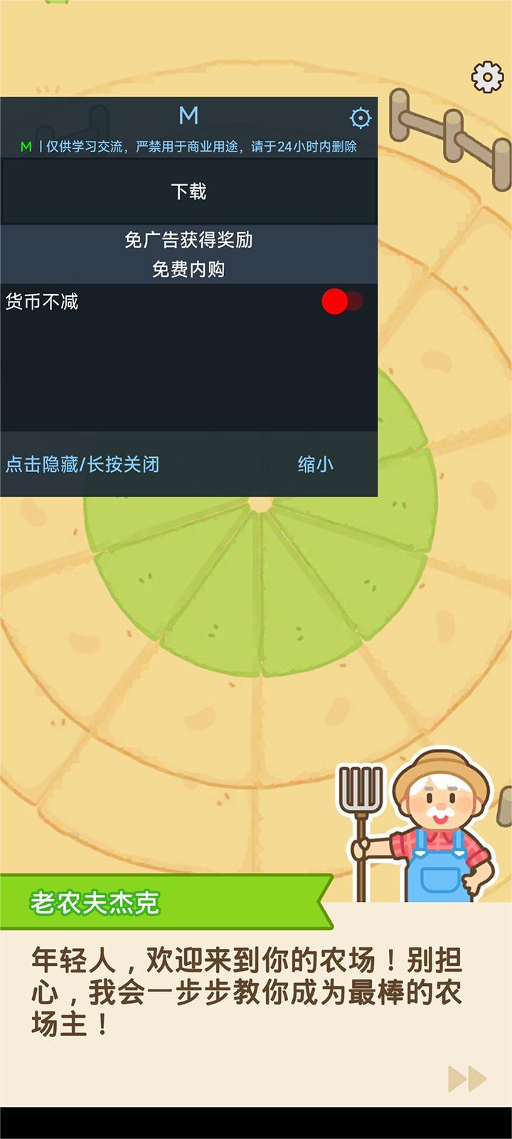 本站提供的是环形洒水农场破解版,游戏内置功能菜单,其中解锁免费内购、免广告获得奖励和资源不减少的功能。