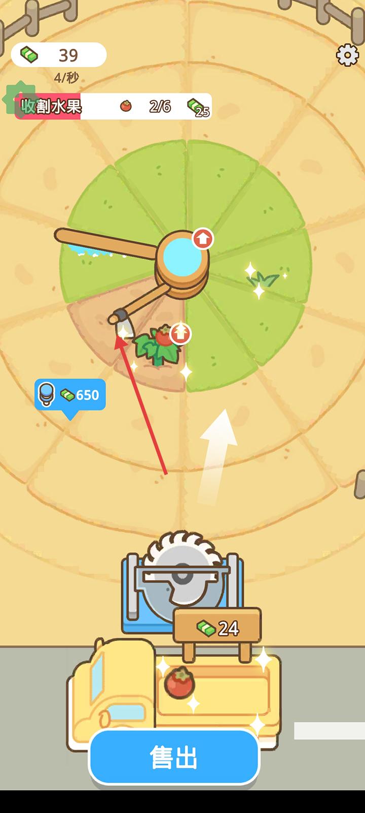 3、拖动下方齿轮靠近作物即可完成收割。