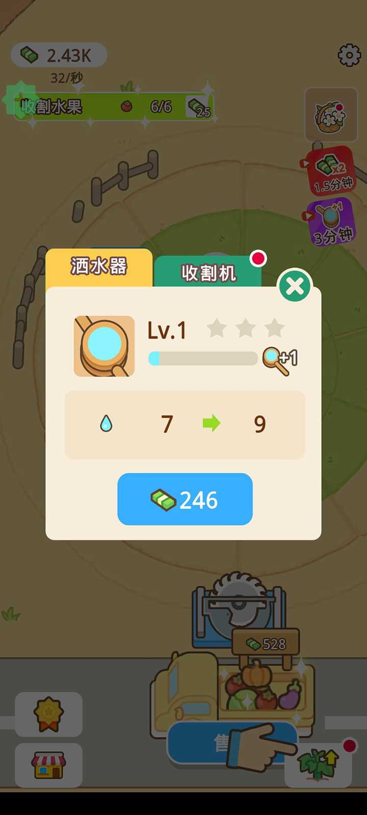 6、同样还可以升级洒水器让它每次浇灌更多的水分,提高你的赚钱效率。