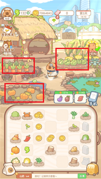 2、通过休闲的二合玩法,体验慢豚豚的生活,收集稀有作物,如万年人参和蔬菜之王等。