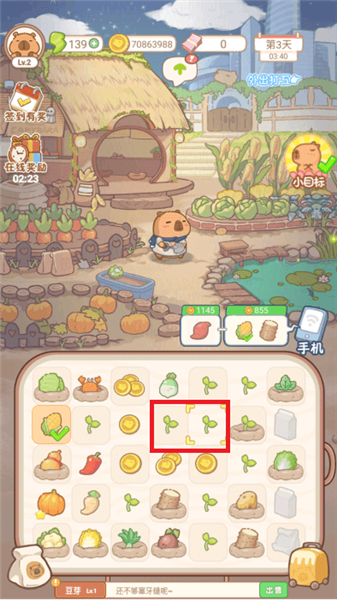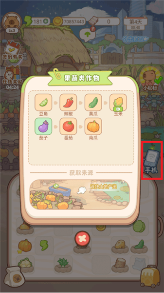 4、点击手机旁边作物图标就能显示在哪里出的,达到目标也能获得金币。