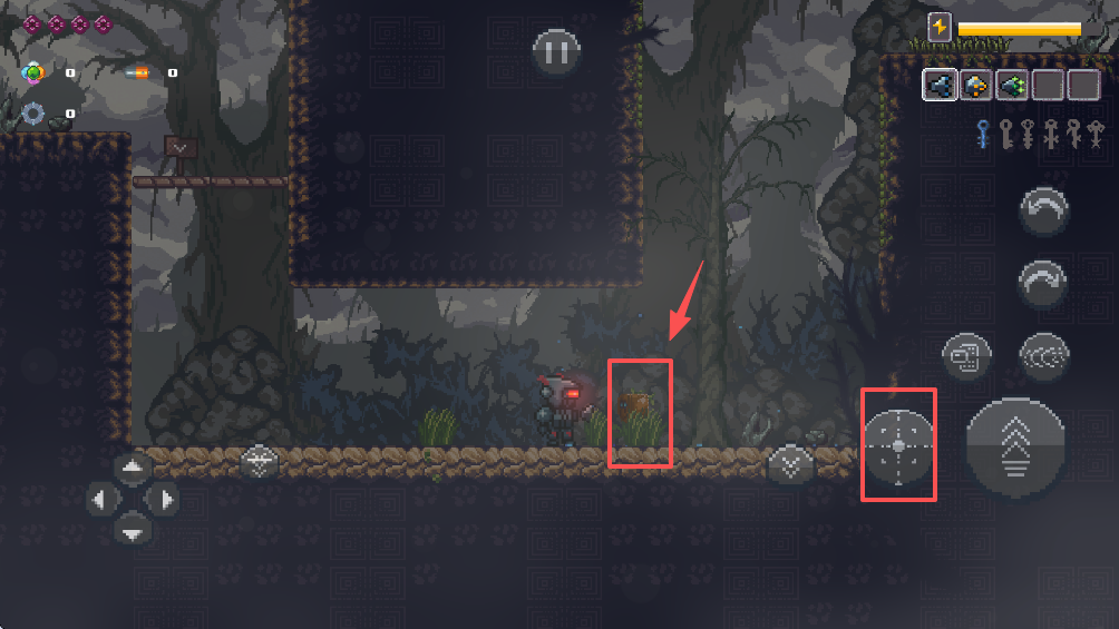 2、游戏中你将通过左边按键操控角色的移动,右边为攻击、跳跃等按键
