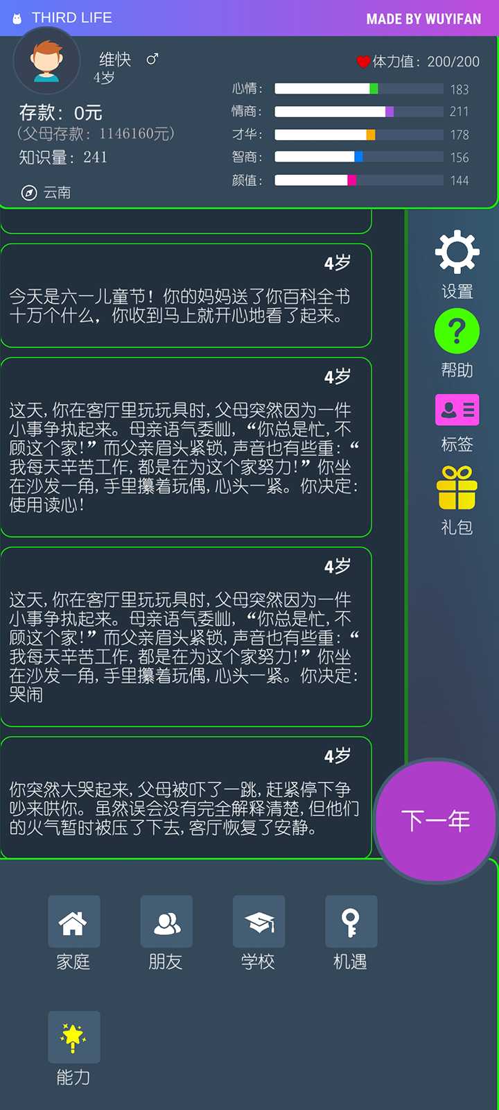 3、多样剧情,这些设定构建出复杂的人际网络,让文字模拟的人生更具真实感。