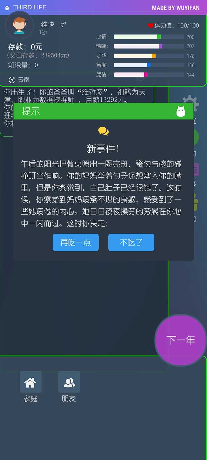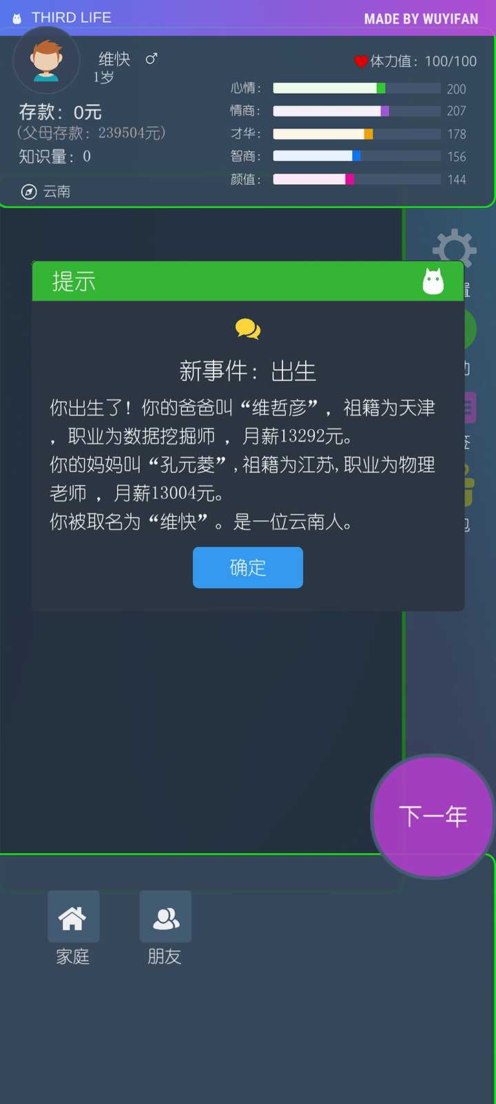 3、这样你就会随机诞生在一个你选择的人生家庭中。