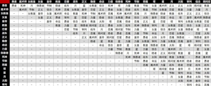 此部分讲述不同塔罗牌组间的面具合成,先看合成图,根据图可以得到:愚者+魔术师=死神