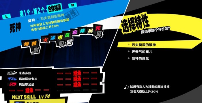 那么合出来的面具就可以从上面这3个特性中来选,同理可以选择的技能也是一样的,详见下图