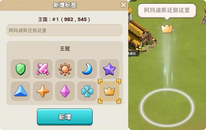 也可以点击地图上任意地块,新增标签指挥成员,组织成员迁城聚集。