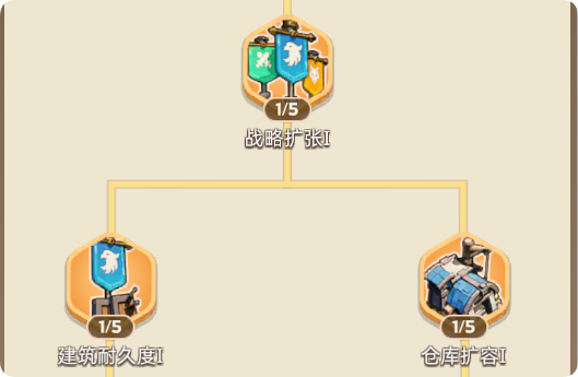 此时科技升级所需资源增加,应优先升级“领地科技”中的“战略扩张”与“仓库扩容”,确保有足够联盟旗帜扩展领土。扩张时需合理规划路线,尽可能覆盖更多资源点。“战斗科技”可先点“扩大集结”,方便更多成员参与巨兽讨伐等集体活动;属性增益类科技可暂缓,因此阶段各联盟尚处于和平发展期。