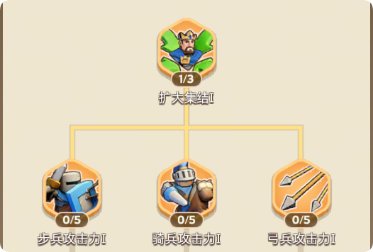 盟主与管理可依据联盟发展阶段,合理点亮科技、规划领地扩张路径。联盟科技分为三大类:发展、领地、战斗。整体推荐升级顺序为: