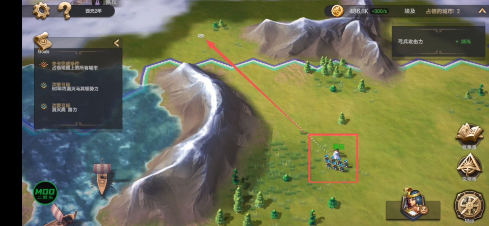 2、然后按住军队并拖动至目标地点,等待军队移动