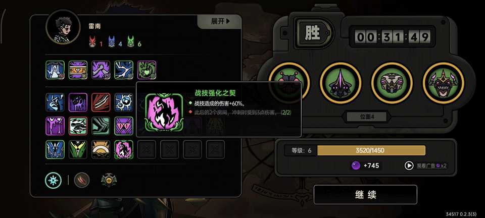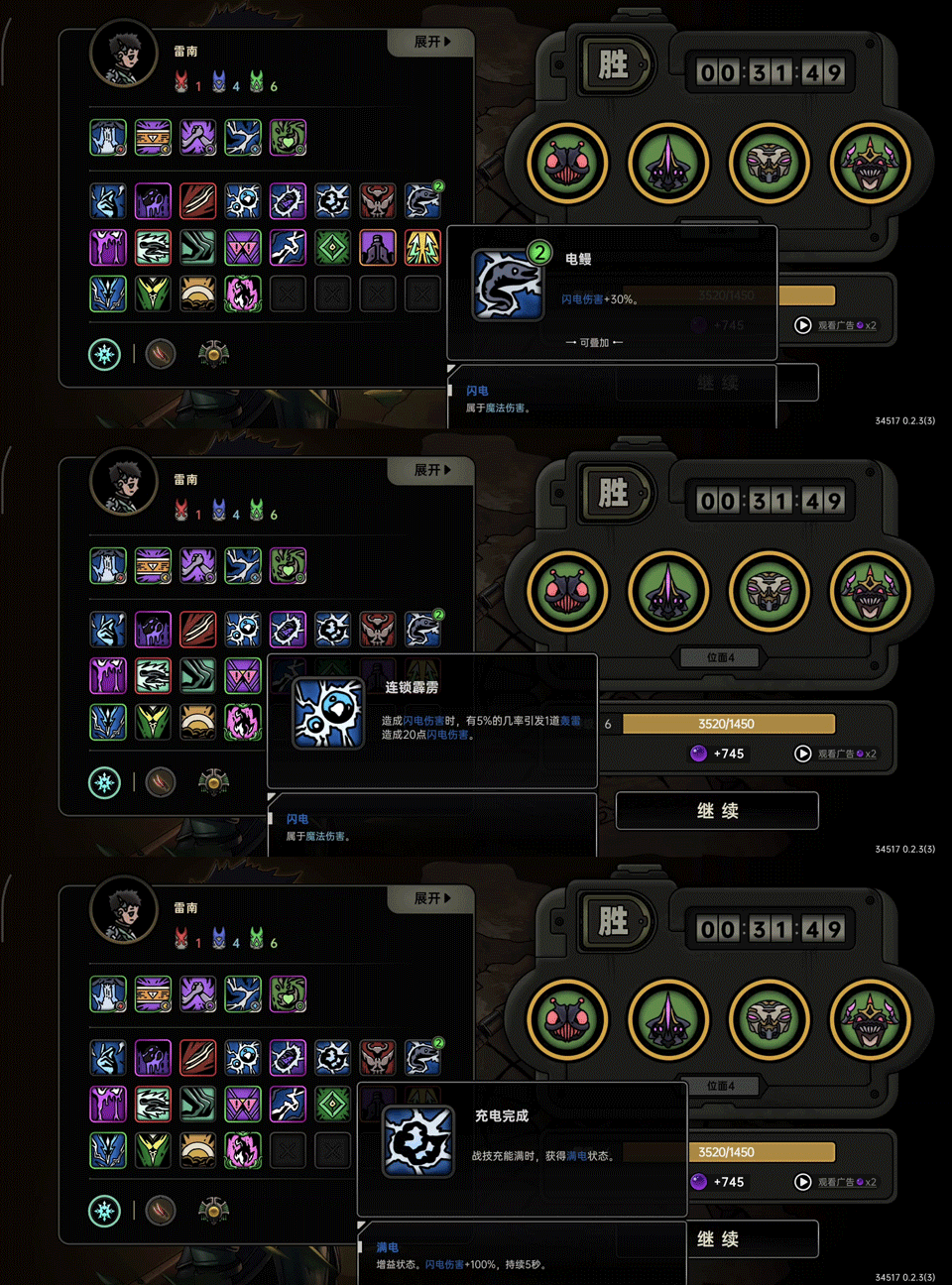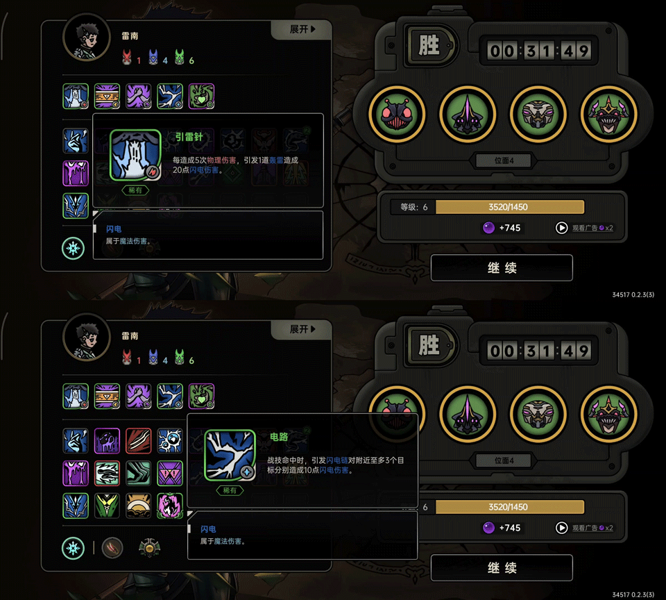 路上的天赋随便拿,尽量走强化房间,不用拿牙齿,当你拿到(引雷针)和(电路)时已经可以轻松清小怪了,前两个位面的BOSS注意走位就行