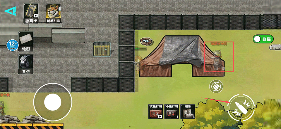 3、战场上还会出现敌人,遇见时使用你的武器将其击杀,成功击杀后可搜索其背包,获取他的资源