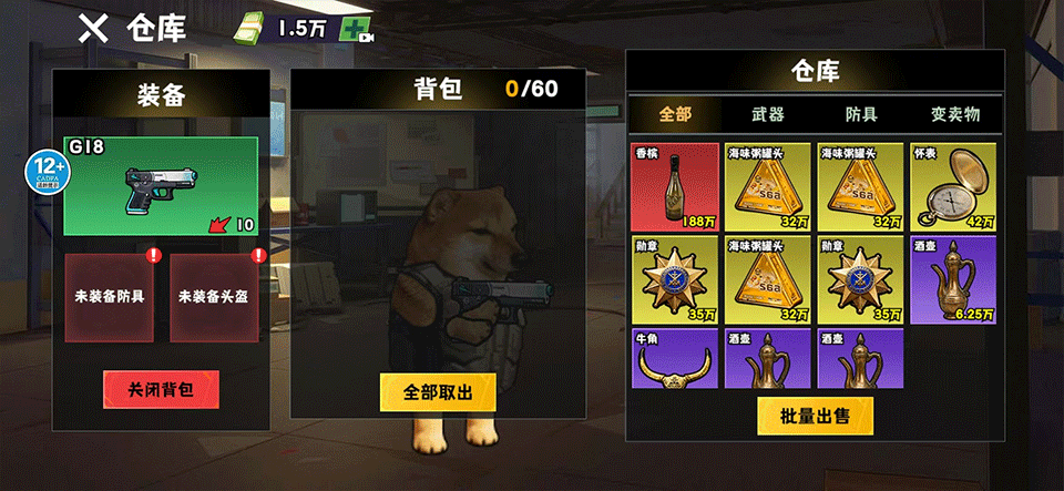 7、在仓库内你可以将撤离带回的资源进行出售换取金钱