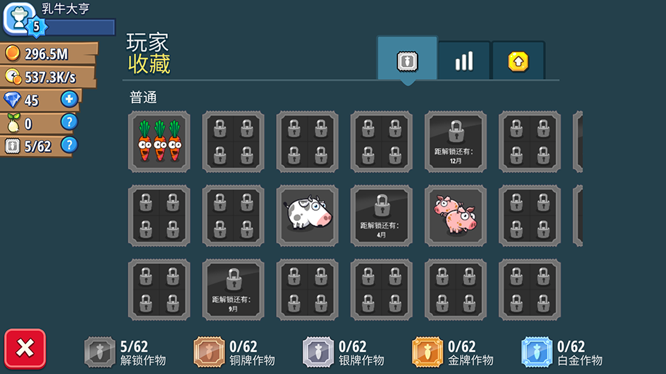第三个,就是满足大家伙的收集癖好了,这个游戏里最重要的也最讨厌的就是鞋盒,它会给你拼图,而且有一定几率会跟你已有的拼图重合,返还钻石给你。拼图越多,作物就会解锁得越多,等级就越好,利润也就加成越高啦。那要怎么获取鞋盒呢?
