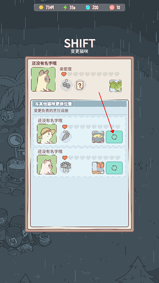 4、最后来到变更猫咪页面,找到想要更换的猫咪,点击它右侧的“更换”图标按钮即可。