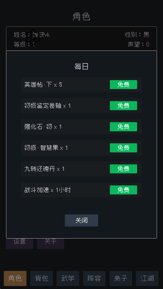 6、江湖内可以自动战斗,打败敌人可以获得经验和金钱,感兴趣的小伙伴快来开启你的武侠之旅吧!