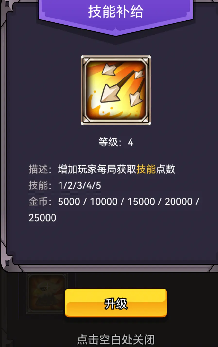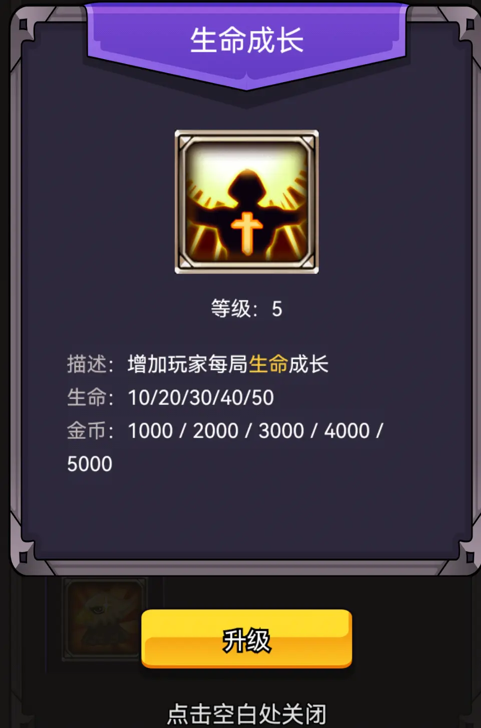 3、肉鸽游戏毕竟慢慢来,金币加成建议优先点满,金币满后,建议先点技能点数;