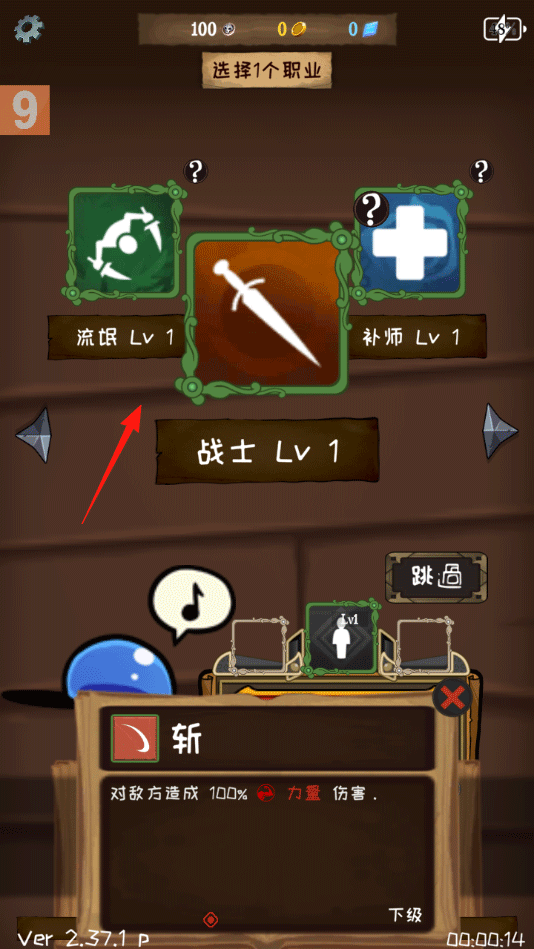 2、接着在战士、牧师、流氓三种职业中选择一个职业,每种职业都有其相应的技能