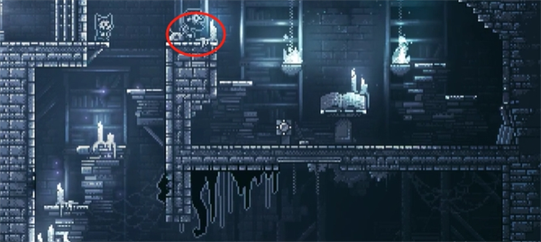 12、爬上吊灯右边的平台,柱子会断裂,把之前推断的柱子推过来修复平台,从平台往左跳过去,获得钥匙。