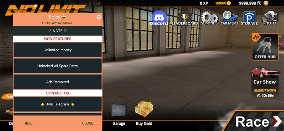 提供的是无极限飙车2无限金币版,此版本已内置mod菜单,提供无限金钱、解锁所有备件、去广告。