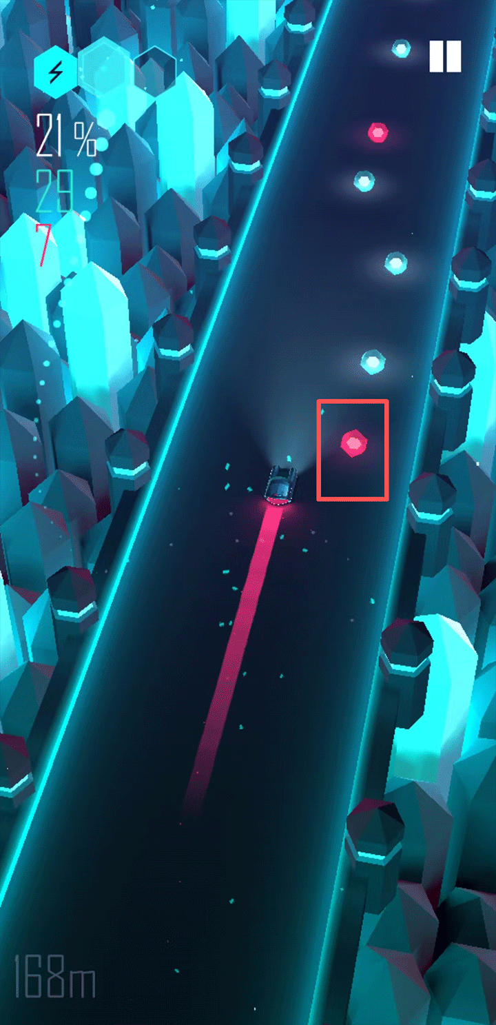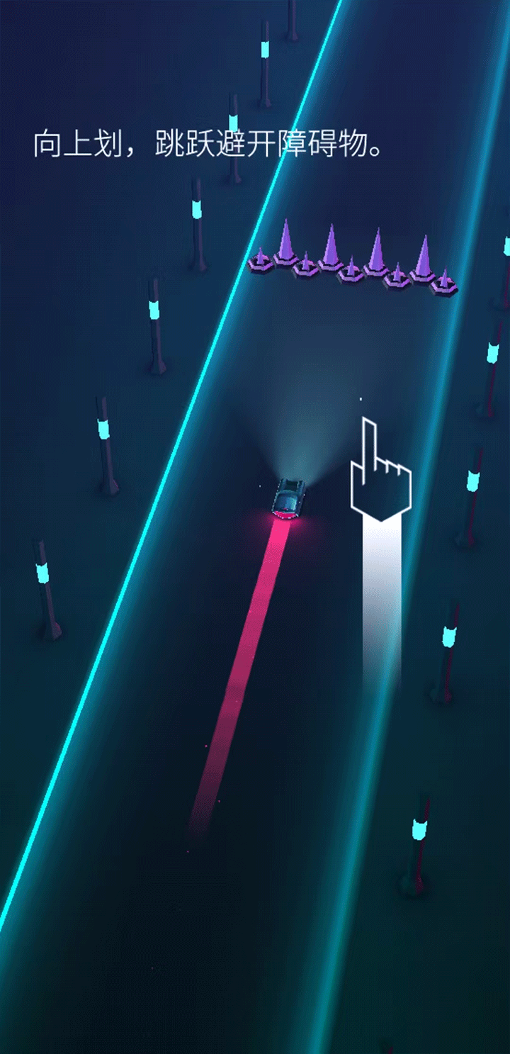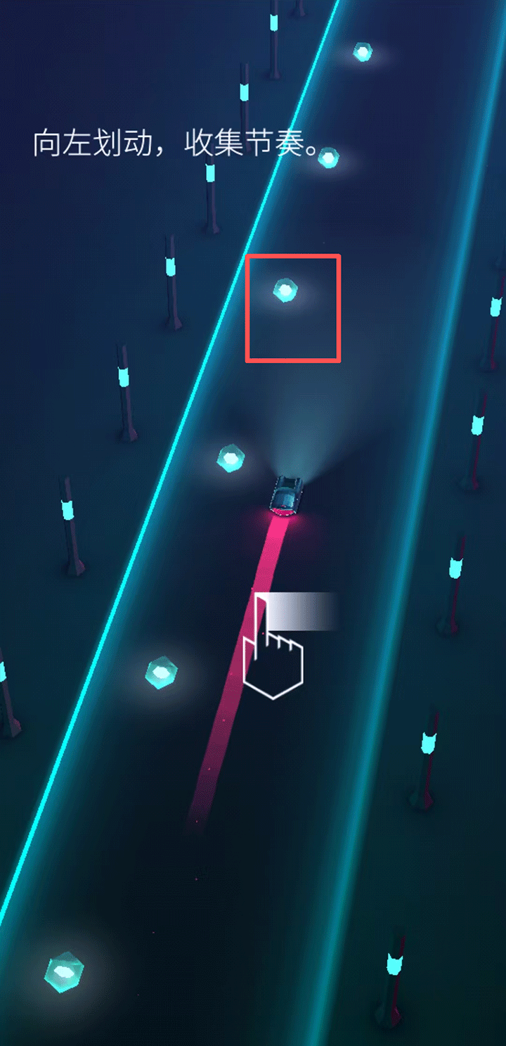 1、游戏中你将通过左右滑动屏幕操控汽车躲避障碍物并收集节奏