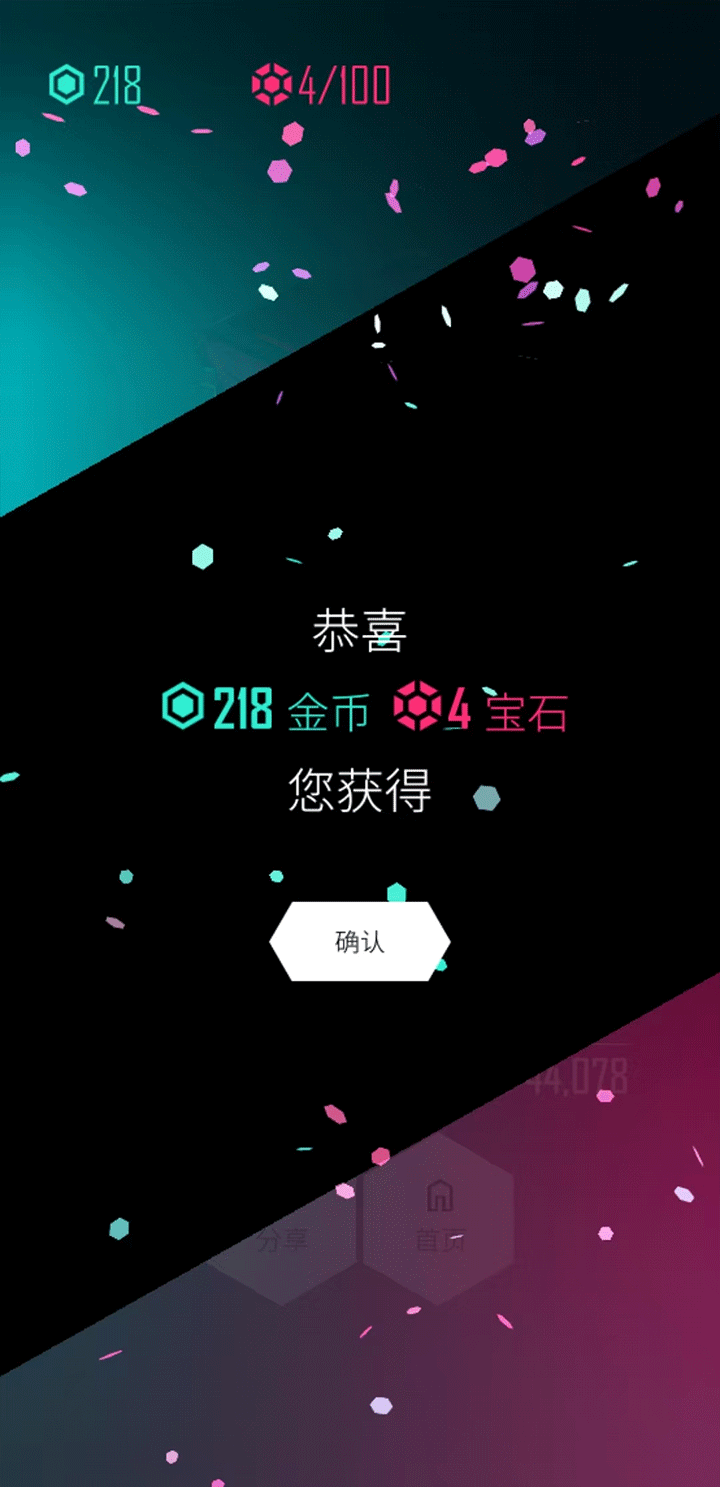 5、当进度条达到100%后即可过关并获得金币和宝石奖励