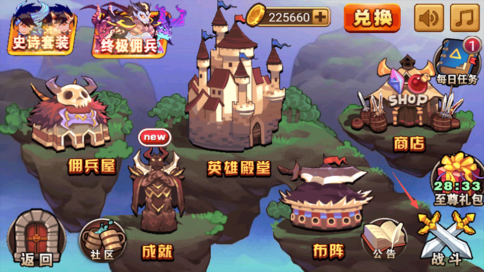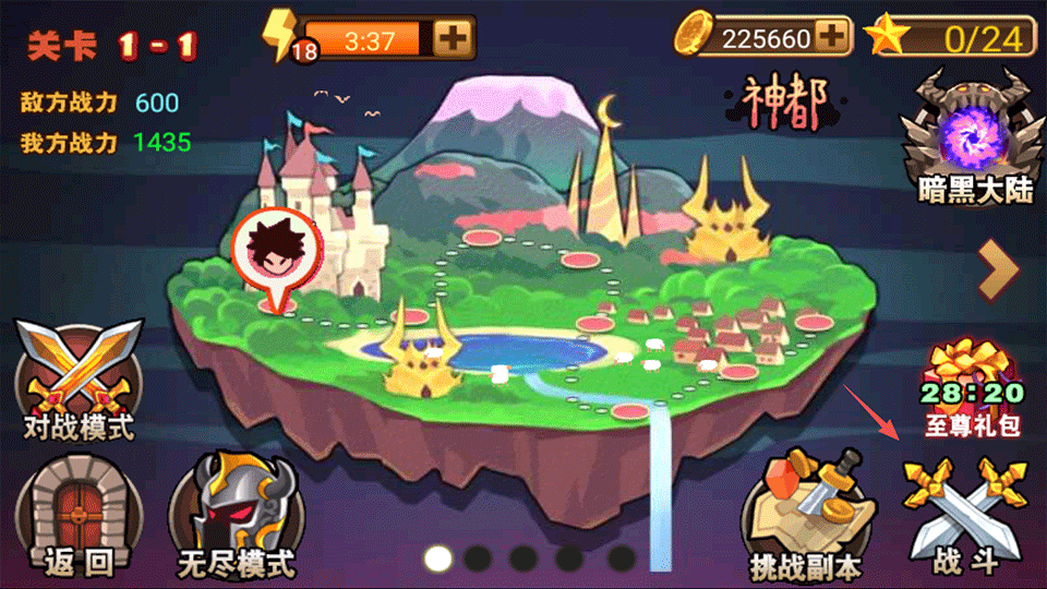 2、然后选择关卡并点击战斗,同时你也可以选择挑战对战模式、无尽模式或副本