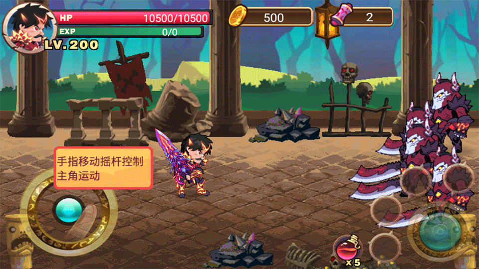 3、游戏中玩家通过手指移动摇杆控制角色移动