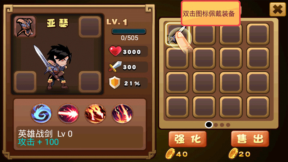 7、冒险途中会获得各种装备,强化装备和技能可以提升角色战斗力和防御能力哦