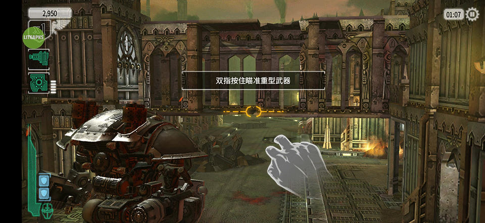 6、遇到敌人重型武器时,双指按住瞄准发射导弹进行摧毁