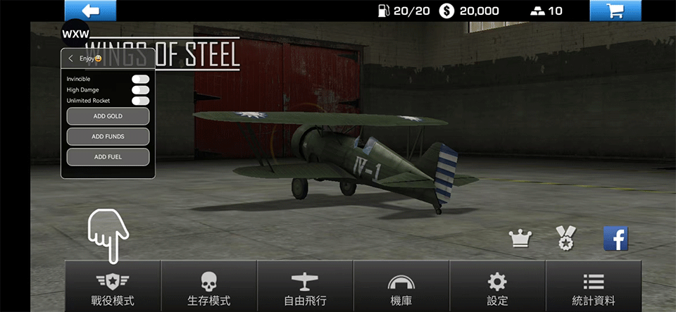 提供的是钢铁之翼无限金币版,此版本已内置mod作弊菜单,可随意修改金币、燃料、火箭、伤害、飞机无敌