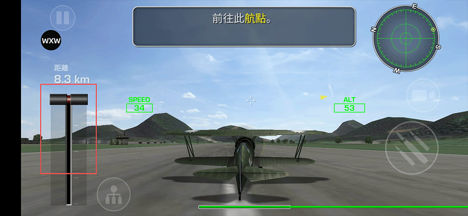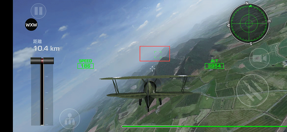 5、钢铁之翼游戏中你将通过上下左右晃动手机来操控飞机的方向,然后向上推动发动机将飞机起飞