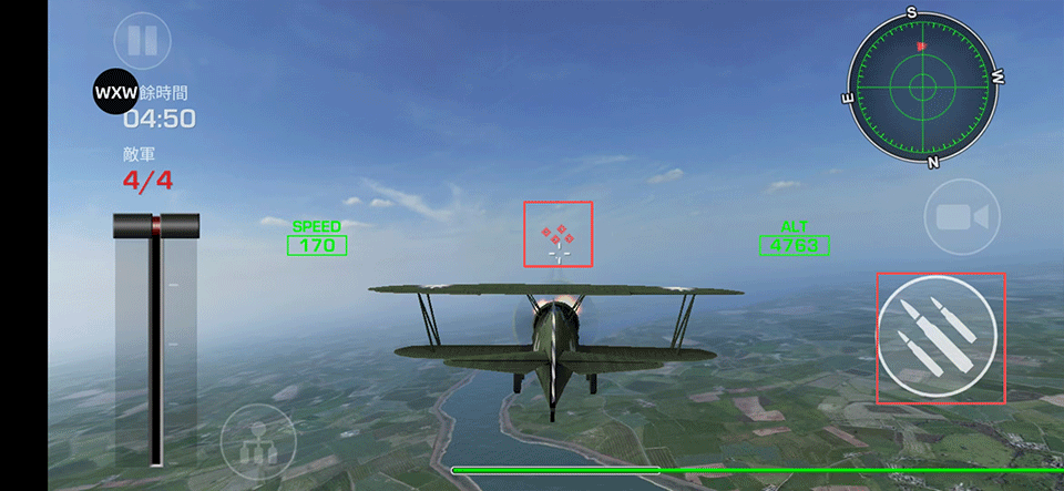 6、遇见敌人战机时将目标瞄准后点击攻击键发射弹药将其击落