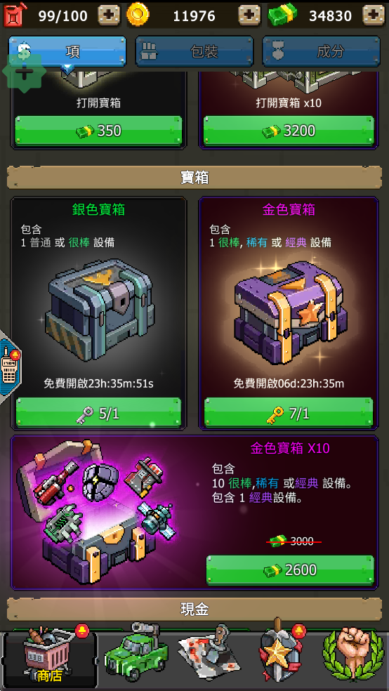 3、当然还可以在商场开宝箱获得,由于我们提供的为破解版,你可以任意开出你想要的设备;