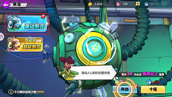 2、进入后随意点击一个基础聚变,然后点击开启,如果抽奖次数多可以选择十连