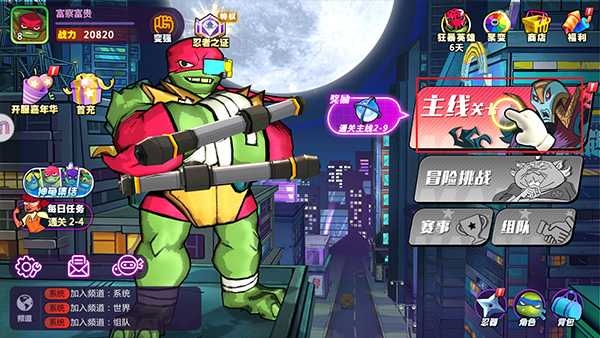 每个忍者龟都有各自不同的武器、招式和技能给你带来截然不同的战斗体验