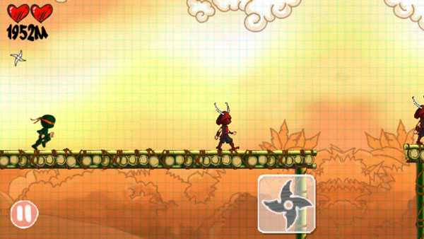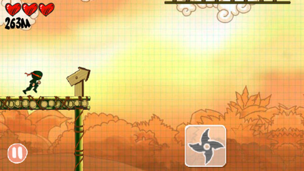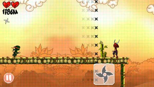 同时,在忍者突袭游戏中拥有跑酷玩法,你将在跑酷过程中斩杀各种各样的敌人,并且还可以收集路边的心形和风车形工具,红心能够补充体力,风车能够为你加速,游戏结束后还可以查看战绩并获取相应的成就,非常的刺激且有趣。