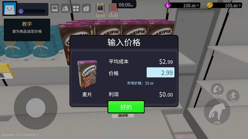 超市经理模拟器手游提供多样化的商品种类,满足各种顾客的需求,确保你的超市能够为所有顾客提供所需商品,尽在这款超市模拟游戏中。