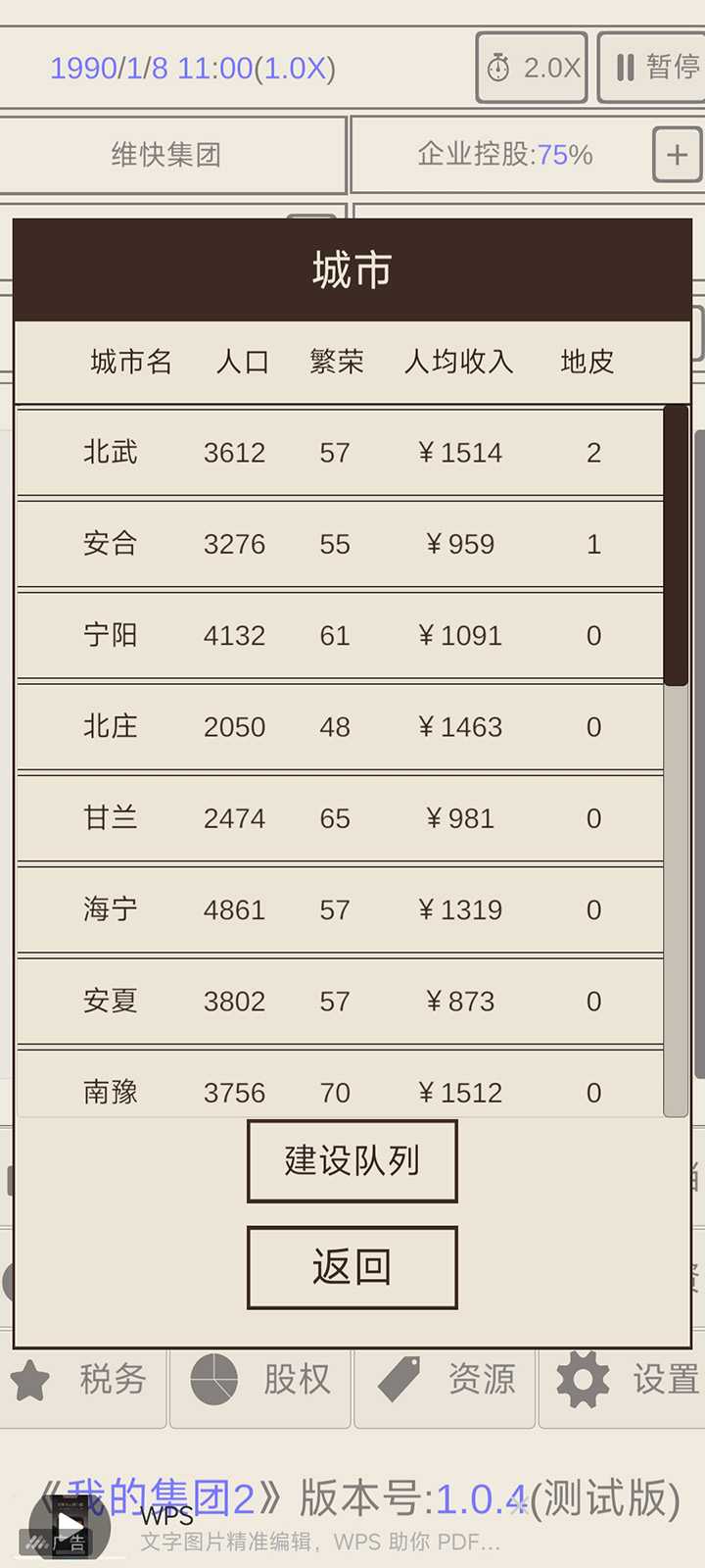 3、玩家将扮演一个公司董事长,管理手中的各种资产