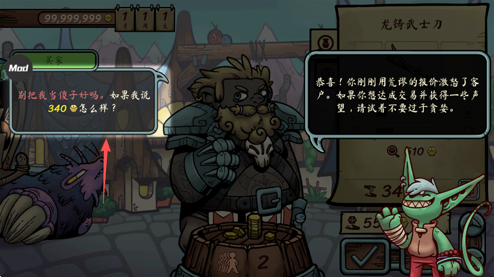 3、市场中会有卖家和买家来找你交易商品,右边为商品的品质,你需要参考这些信息决定是否交易