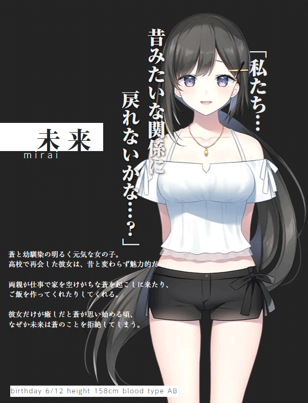 她是有着与”七瀬未来“相同样貌的架子……绝对不会背叛自己的、理想中的女友。