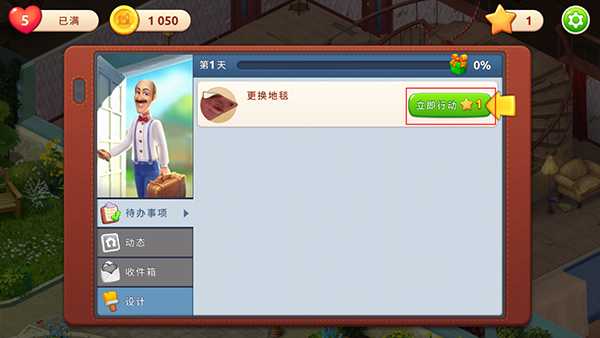 5、回到游戏主场景,点击屏幕左下角的“待办事项”图标,玩家可以在上面找到自己待办事项列表;