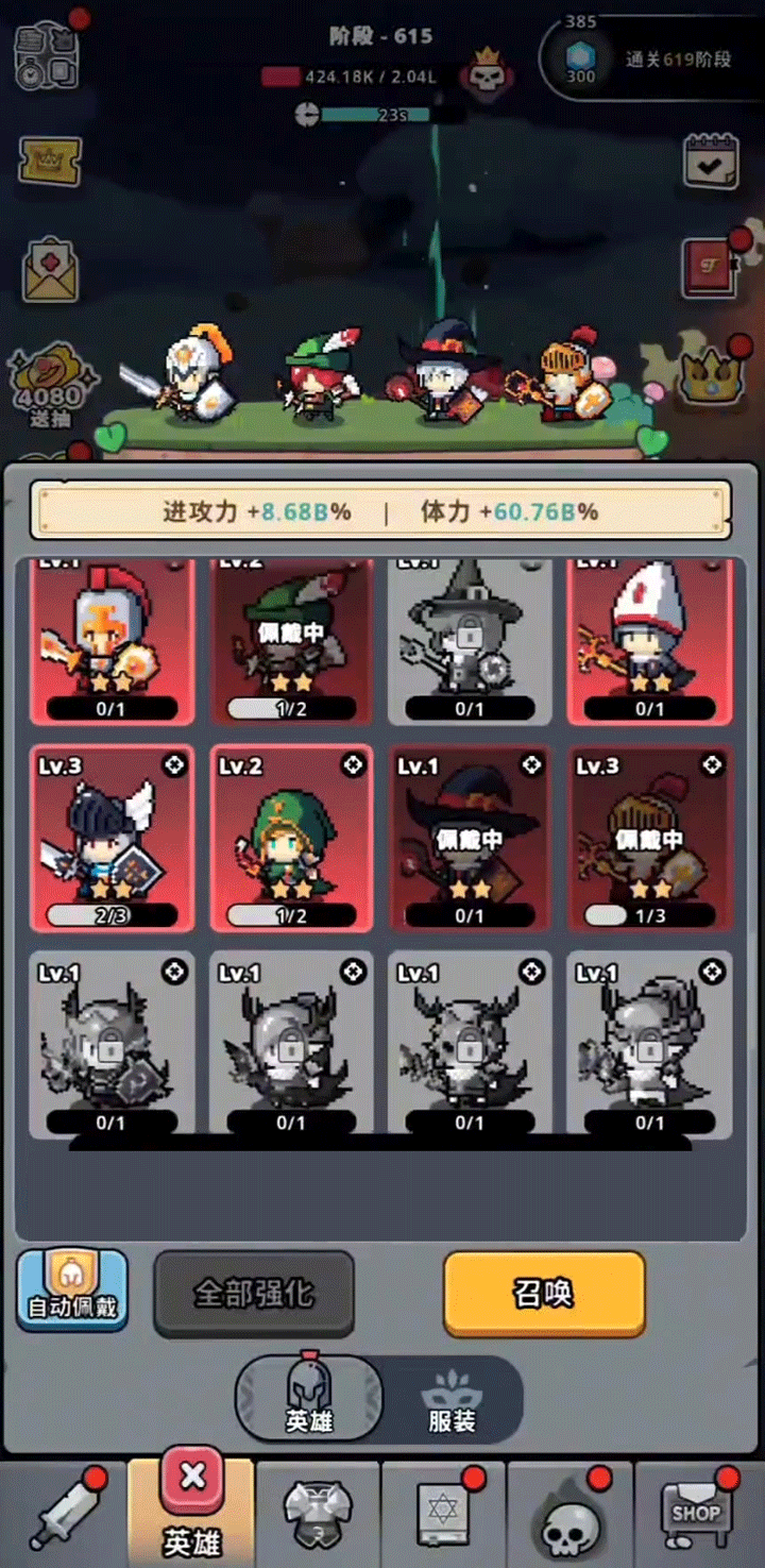 4、通过独特的合并游戏进化宠物并与英雄签订契约。