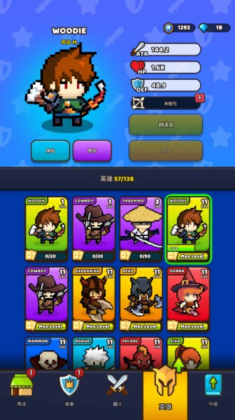 2、点击英雄,可以切换更强大的英雄以及升级等级。