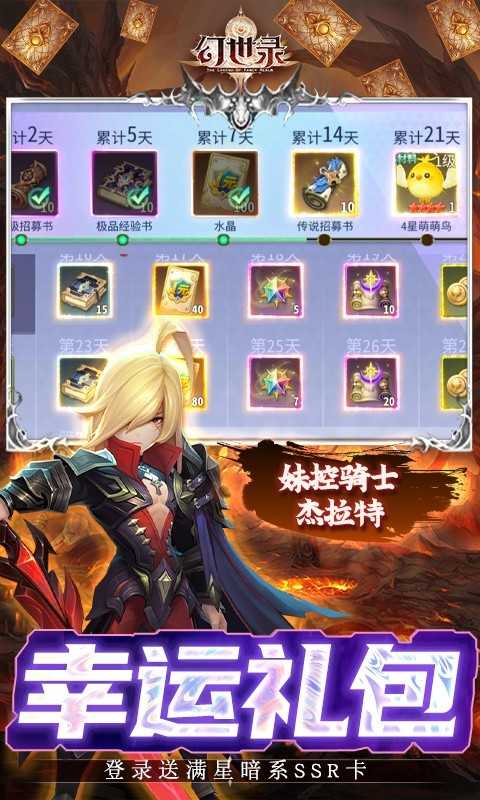 1、登录送SVIP5,充值比例:1:2000,超强群体输出卡,百次抽卡、强力符文和海量红水晶