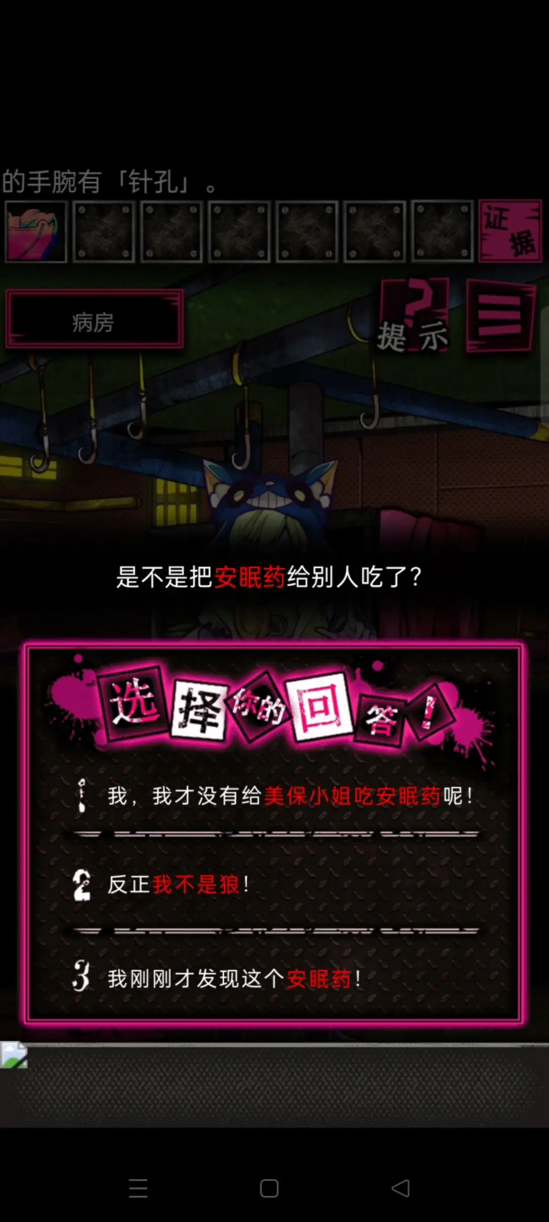 去到病房发现安眠药被用了,注射器少了一个。然后被发现这里选第三个。