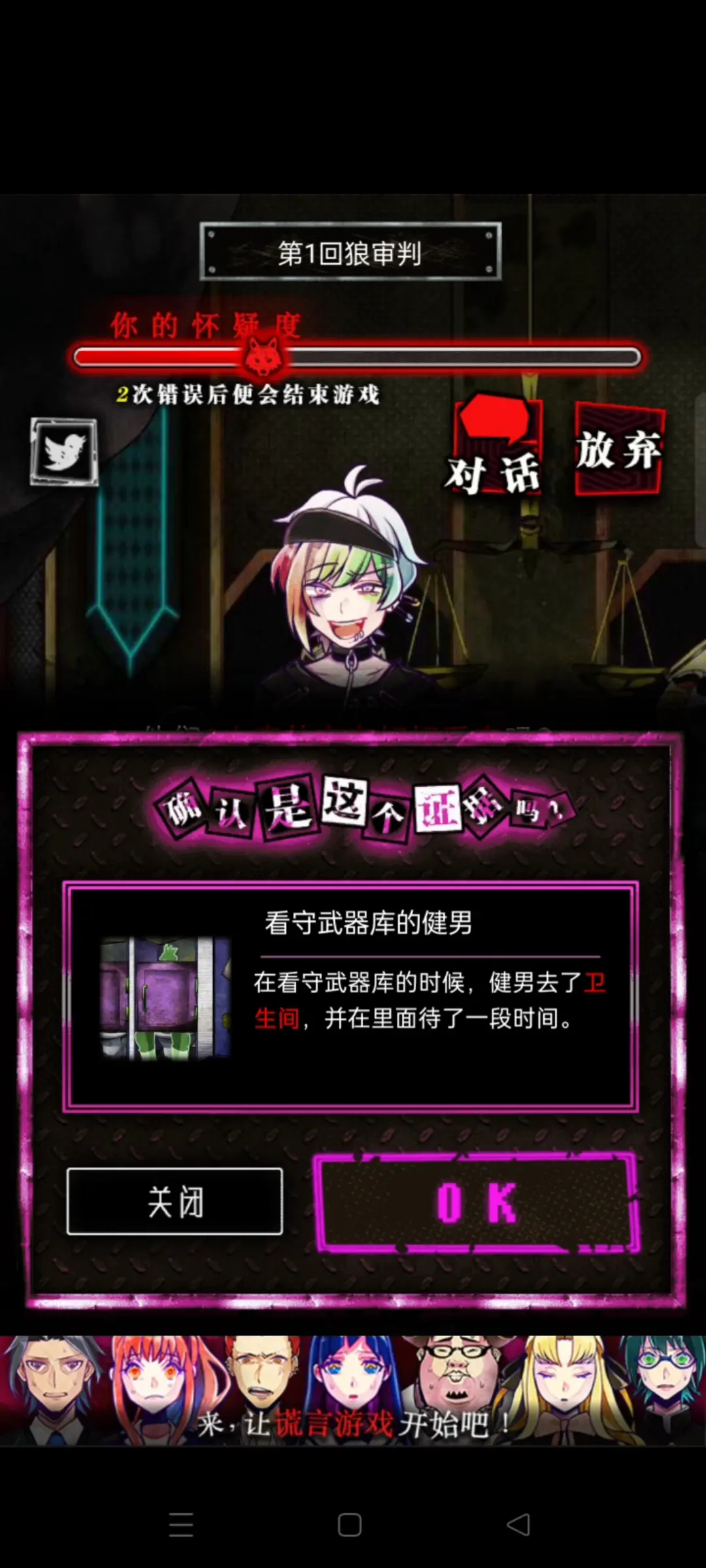 使用入手的证据,与被认定为是「狼」的人在审判中决战,让对手露出马脚!