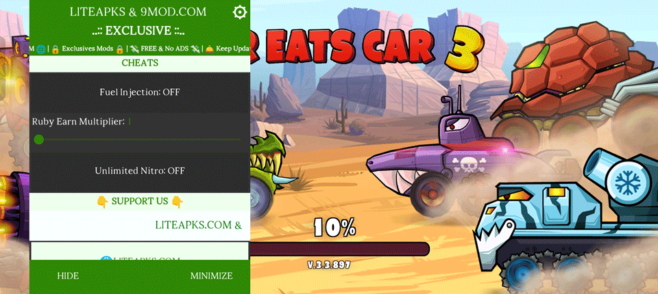 PS:本次为大家提供的是疯狂车吃车3无限钻石无限汽油版,该版本已经完成修改解锁燃油喷射系统、红宝石收益倍数、无限氮气。