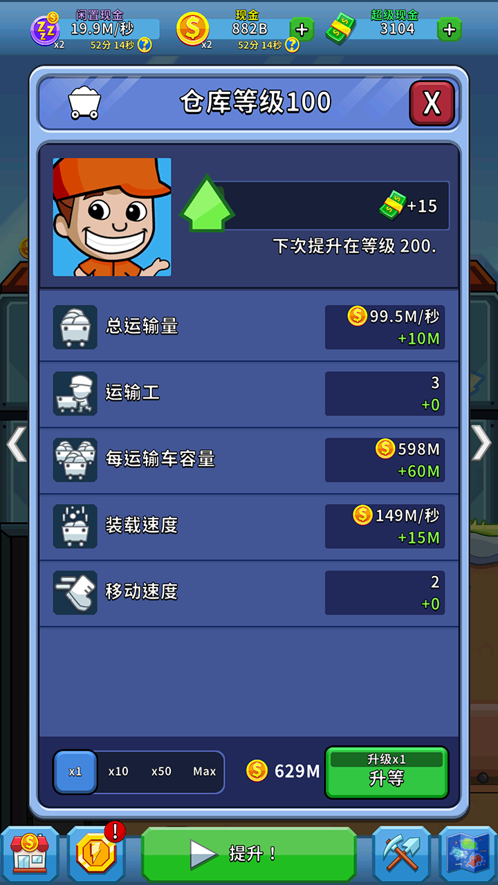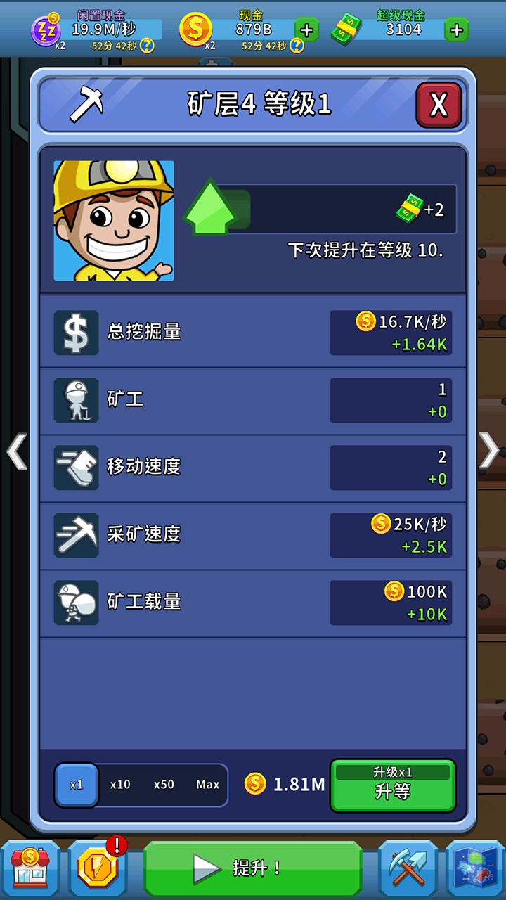 7、不同矿工经理供你选择,各种道具特效自由组合,财富直线增长。